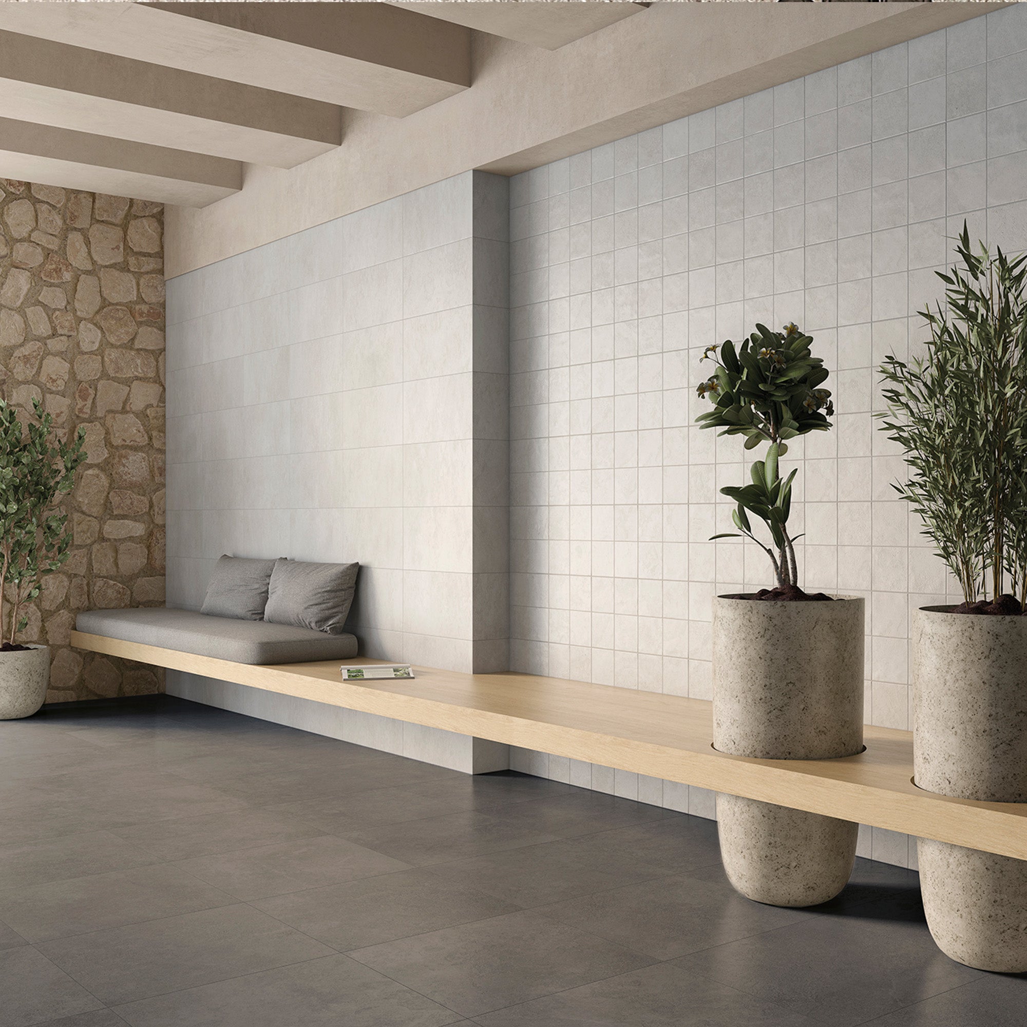 Entdecken Sie die moderne Schlichtheit und urbane Eleganz unseres Betoneffekts. Unsere Fliesen in Betonoptik bringen den minimalistischen Charme von Beton in Ihre Räume, kombiniert mit den praktischen Vorteilen von langlebigem Feinsteinzeug. Schaffen Sie eine stilvolle, puristische Atmosphäre, die sowohl modern als auch pflegeleicht ist – perfekt für zeitgenössische Wohn- und Arbeitsbereiche.
