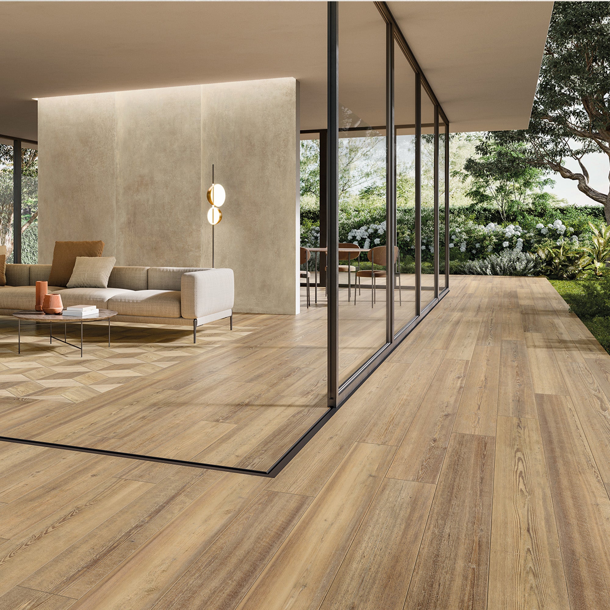 Entdecken Sie die perfekte Kombination aus natürlicher Holzoptik und der Robustheit von Feinsteinzeug. Diese Fliesen vereinen ästhetische Wärme mit praktischer Langlebigkeit und sind ideal für stilvolle und pflegeleichte Wohnräume.